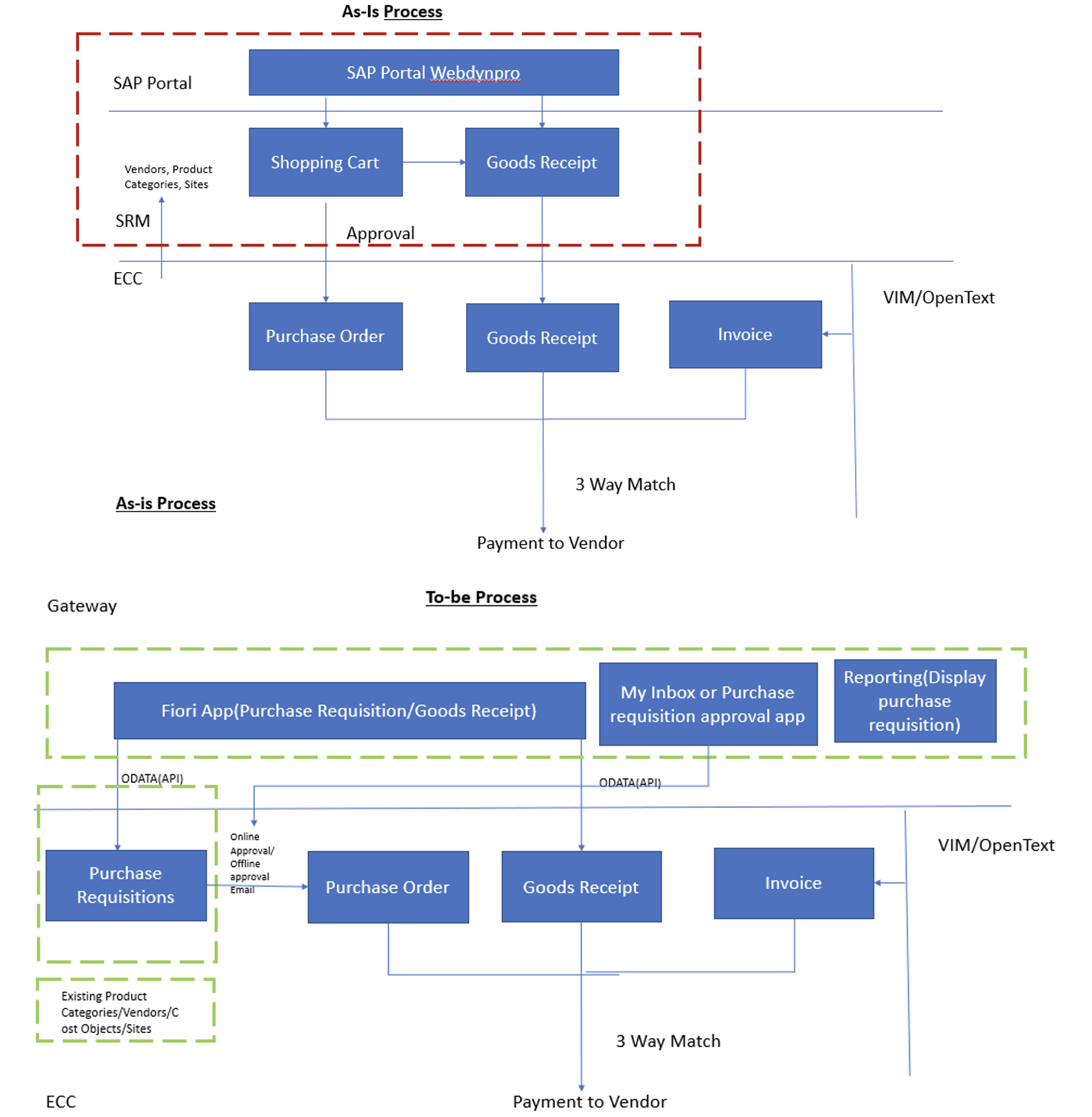 Customer was using SRM system for indirect procurement which was replaced by SAP standard PR/PO functionality powered by SAP Fiori application using extended workflow.